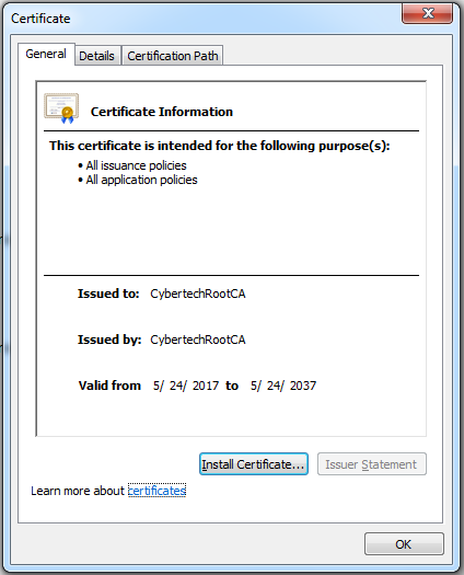 The Cybertech Certification Authority is responsible to issue trusted certificates to devices and resources it maintains.
