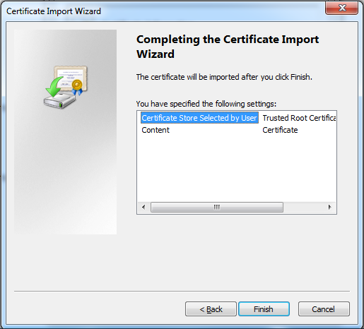 8. Click Next then Finish on Completing the Certificate Import Wizard