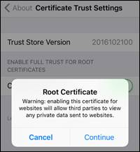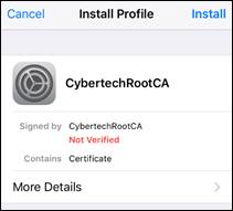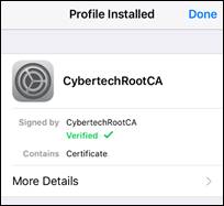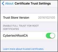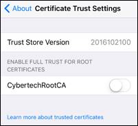 9. Now go to Settings -> General -> About -> Certificate Trust Settings and enable full trust for CybertechRootCA by moving its slider to the right